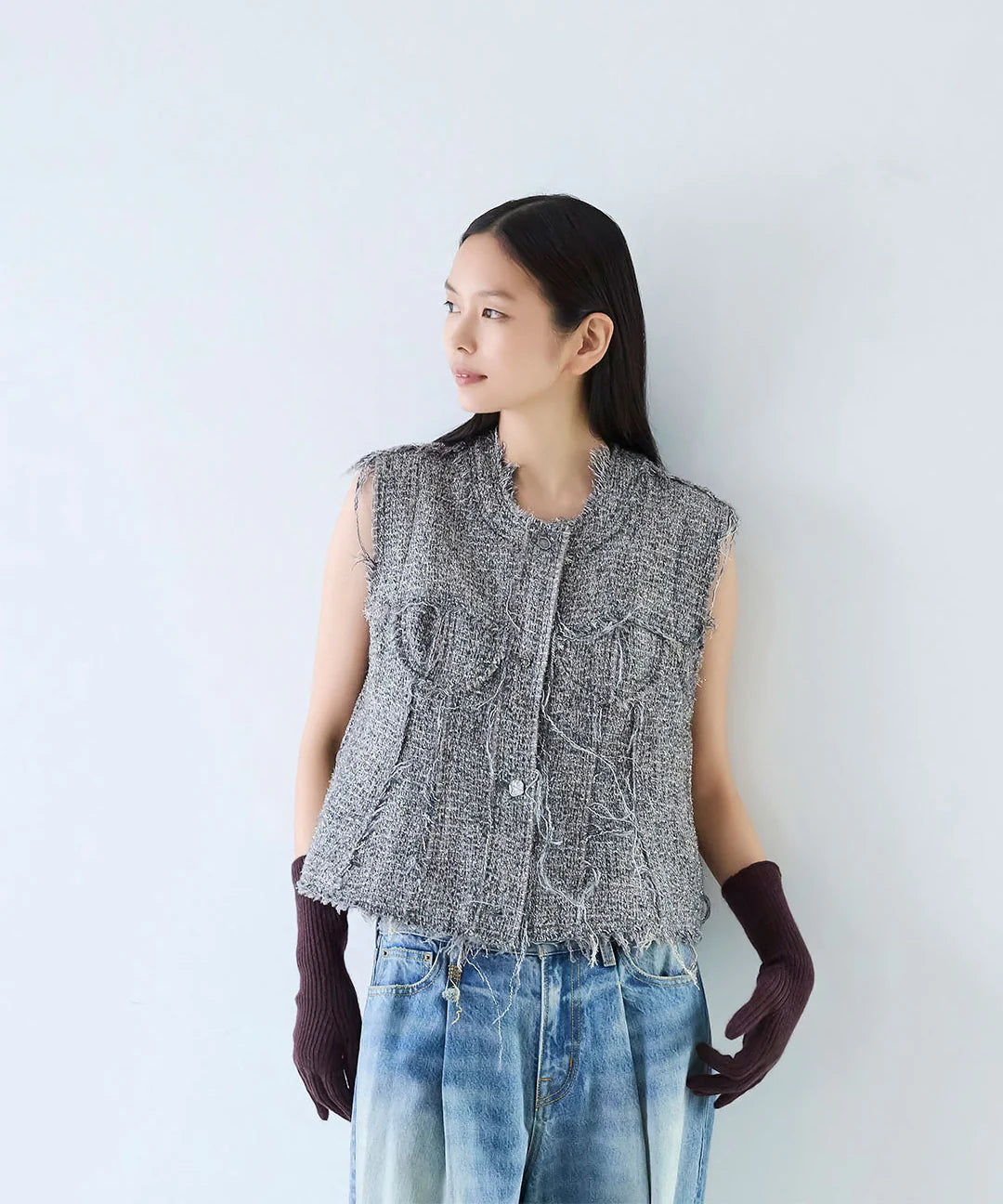 Used-Look-Jeans mit weitem Bein